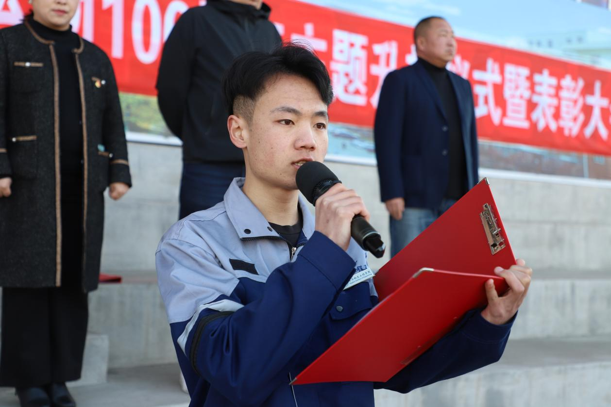 “好习惯之星”代表、建筑管理工程系土木243班张利民发言,他号召全体学生以品德为立身之本、以习惯为成长之基,将个人修养融入学校发展大局。他提出,新时代大学生应立足校园实践,在日常行为中践行文明规范,以主人翁姿态严守校规校纪,将文明用语转化为行为自觉,以优良学风彰显青年担当,以全员参与、全程改进的合力夯实校园文明根基,为学校完成教育部普通高等学校本科教育教学审核评估,助力学校高质量发展迈上新台阶。