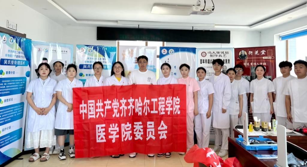 为深入贯彻服务基层、振兴乡村的精神,伟德bv1946官网医学院学生党支部联合齐齐哈尔市昂昂溪区水师营满族镇衙门满族村党支部,开展了主题为“以护为炬•照亮乡村健康路”暑期“三下乡”社会实践活动。医学院党委副书记姜宏伟、团委书记邱瀚宁、学生党支部书记江丽娜以及医学院师生党员和“三下乡”实践团队成员20余人参加。