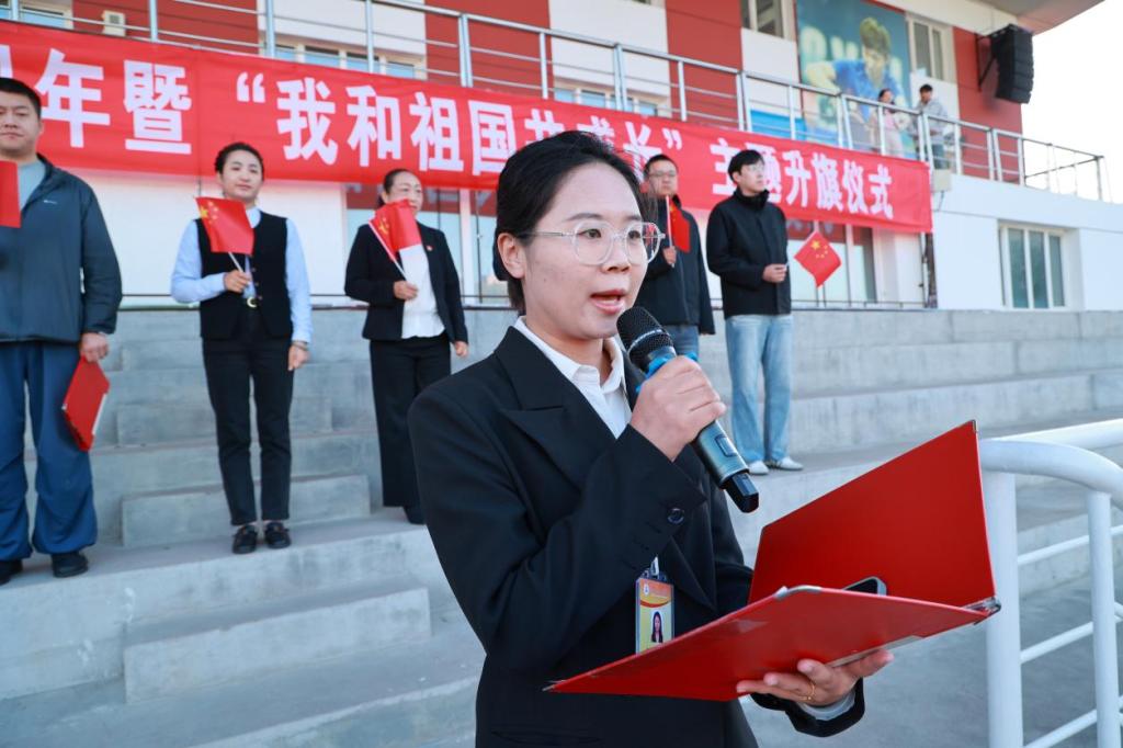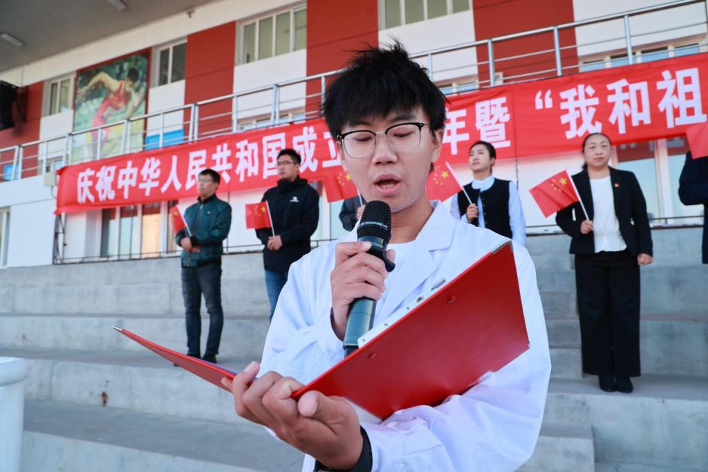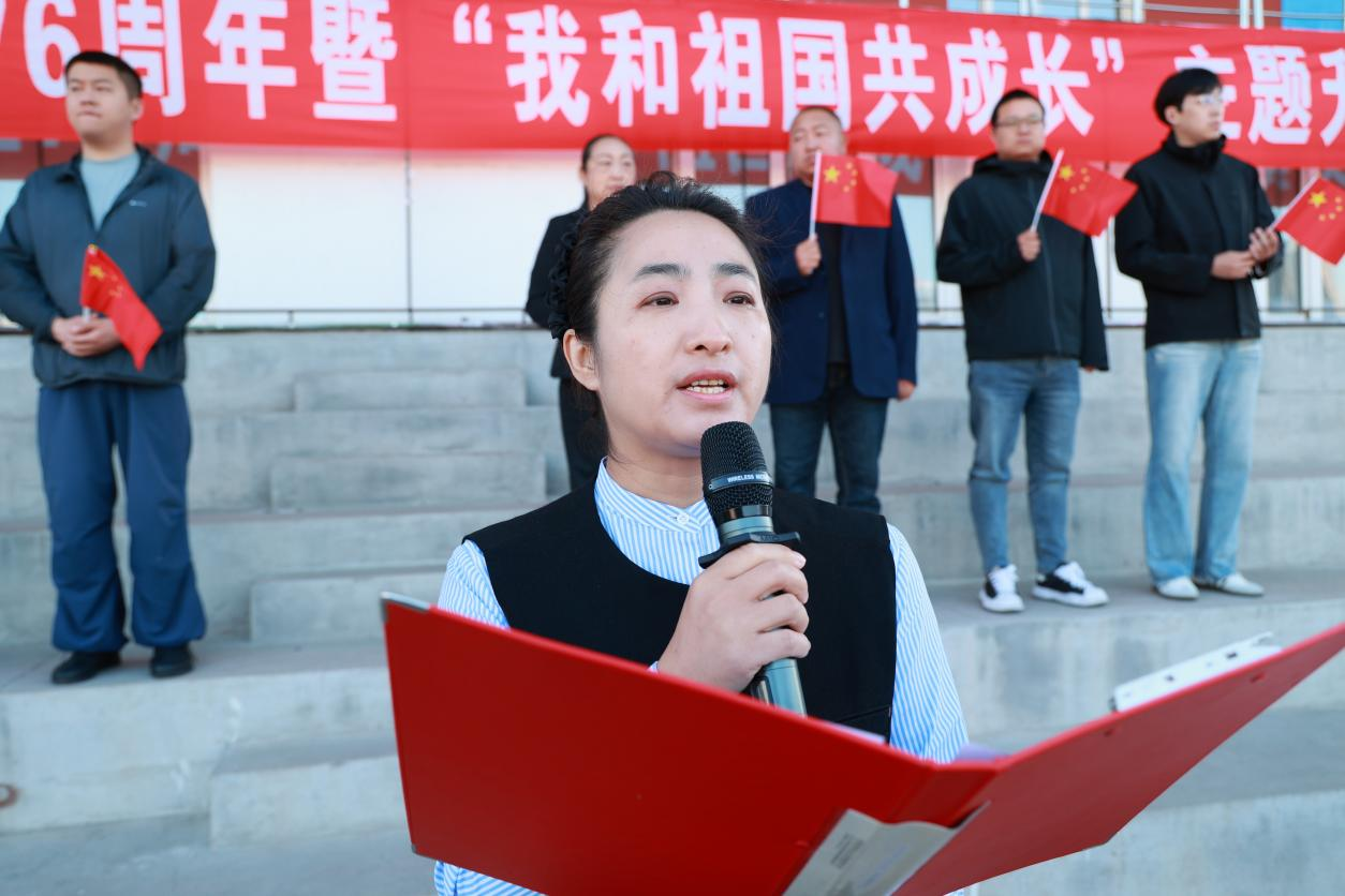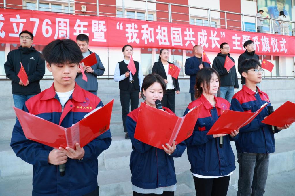 76年砥砺奋进,76年春华秋实,为庆祝中华人民共和国成立76周年,激发全校师生爱国情,9月30日,庆祝中华人民共和国成立76周年暨“我和祖国共成长”主题升旗仪式在伟德官网体育场举行。学校党委副书记、纪委书记、副校长陈景鑫出席仪式,学生工作处处长王丽萍、副处长孙晓芳,团委书记高士涵,各二级学院党委副书记、辅导员、全体2025级新生参加。