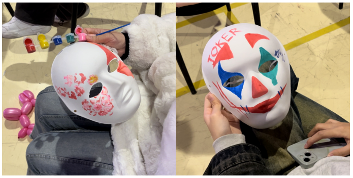 随后,其他同学也纷纷积极主动登上舞台为大家演唱喜爱的歌曲,台下的观众在绘制面具的同时,也为台上表演的学生加油鼓掌。