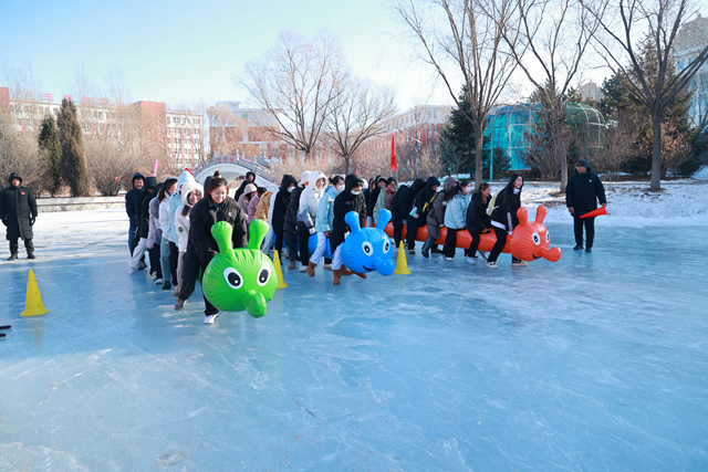 开幕式结束后,来自各系的300余名选手在易湖冰场、风雪操场进行了“雪地毛毛虫”“雪地跳绳”“雪地踢毽子”“冰上保龄球”“冰车接力”“速滑接力”“冰上拔河”“冰上陀螺 ”八个项目的角逐。与往年不同的是,今年运动会在保留冰上项目的同时,创新性的开展了趣味雪上项目。比赛场上,同学们不畏严寒,奋力拼搏,展现了积极进取、昂扬向上的精神风貌,提升了对冬季冰雪运动的参与度。运动会的举办,为推动冰雪运动在高校的普及和发展起到了积极作用。