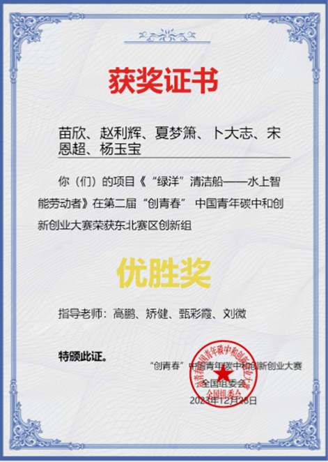 为积极稳妥推进碳达峰碳中和,持续推进能源安全新战略走深走实,切实把学习成效转化为推动能源高质量发展的生动实践,中国青年创业就业基金会、中国石油大学(北京)、中国石油天然气集团有限公司、中国石油化工集团有限公司、中国海洋石油集团有限公司共同发起和主办第二届“创青春”中国青年碳中和创新创业大赛,第二届“创青春”中国青年碳中和创新创业大赛以“迈向碳中和:中国青年在行动”为主题,12月28日东北区域赛落下帷幕。伟德官网团队负责人电气201班李庆霖,成员李世佳、阎秋华、李长甜、杨顺、兰庆儒完成的作品《飞磁立止-开启电磁急停新时代》获创新组铜奖;团队负责人电气201班苗欣,成员赵利辉、夏梦箫、卜大志、宋恩超、杨玉宝完成的作品《“绿洋”清洁船——水上智能劳动者》获创新组优胜奖。