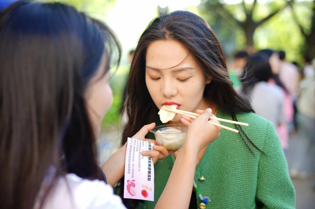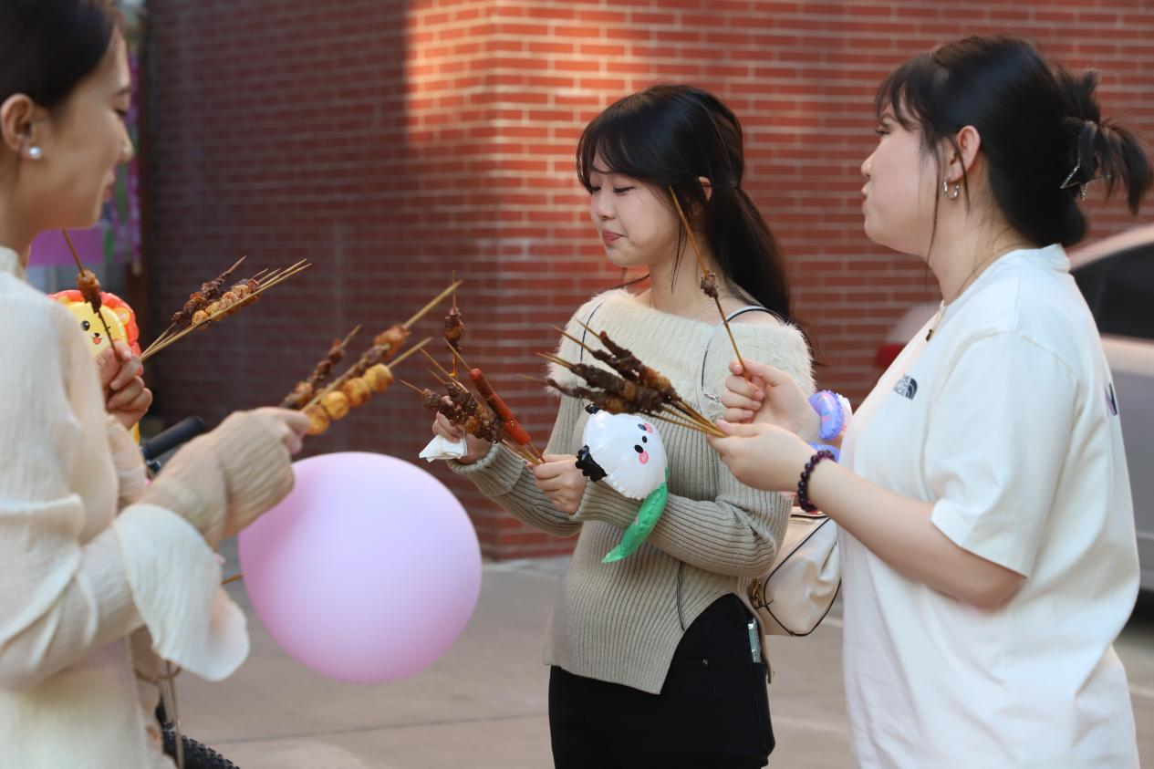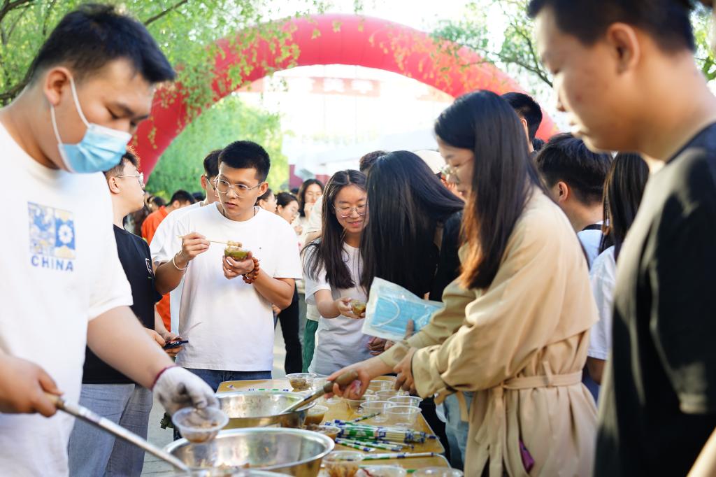 美食街人头攒动,烟火气与歌声在风中飘荡,毕业生们眉开眼笑,品尝老师和学弟学妹精心烹制的美食,感受母校深情厚谊,不住地感叹:“学校对我们太好了,学弟学妹太热情了,这是最美味的美食.....”