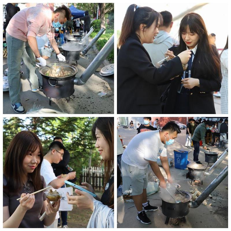 信息工程系架起四口大铁锅,为毕业生们带来了热气腾腾的铁锅炖。炖五花肉、炖排骨豆角、炖小鸡蘑菇、炖一切美好,香气弥漫全场。学弟学妹们从摆桌子、架锅、切菜、炖菜到热情地为毕业生打菜,一直笑容满面,希望通过他们的热情服务,毕业生们能够留下美好回忆。