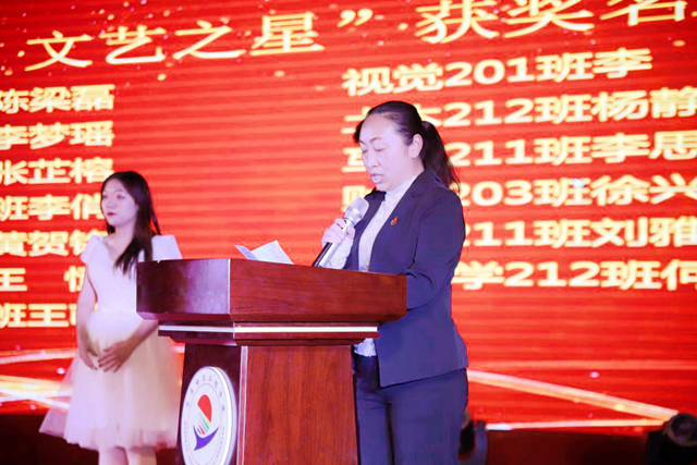 在梦蝶之光篇章中,建筑工程系学生工作副主任王丽萍宣读《伟德bv1946官网梦蝶“文艺之星”获奖学生名单》,信息工程系视觉201班李晨等13人被评为学校首届梦蝶“文艺之星”。
