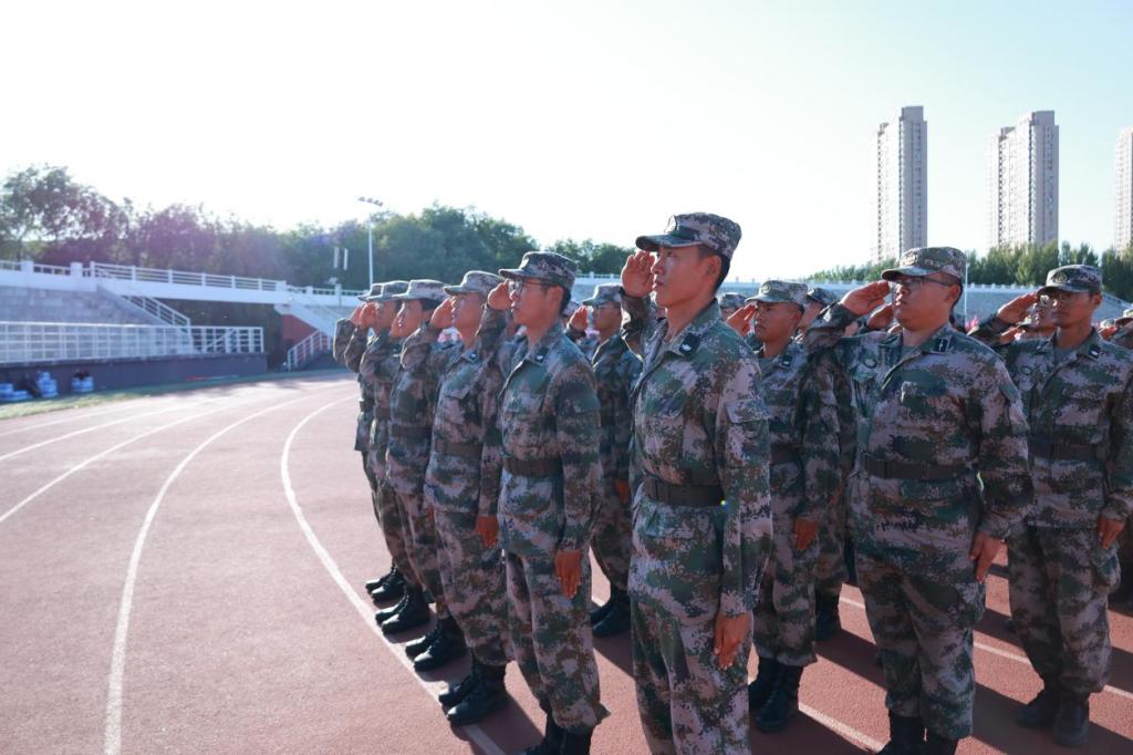 “迎军旗!向军旗敬礼!”伴随着响亮的口令,三名护旗手护卫鲜艳的八一军旗,迈着铿锵有力的步伐走过队伍。