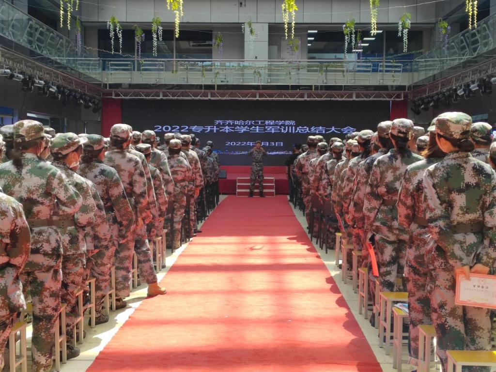 9月3日,2022级专升本学生军训总结大会在学生活动中心举行,副院长张振笋出席,各系学生工作副主任、新生辅导员、学长、军训教官以及2022级专升本全体学生参加。