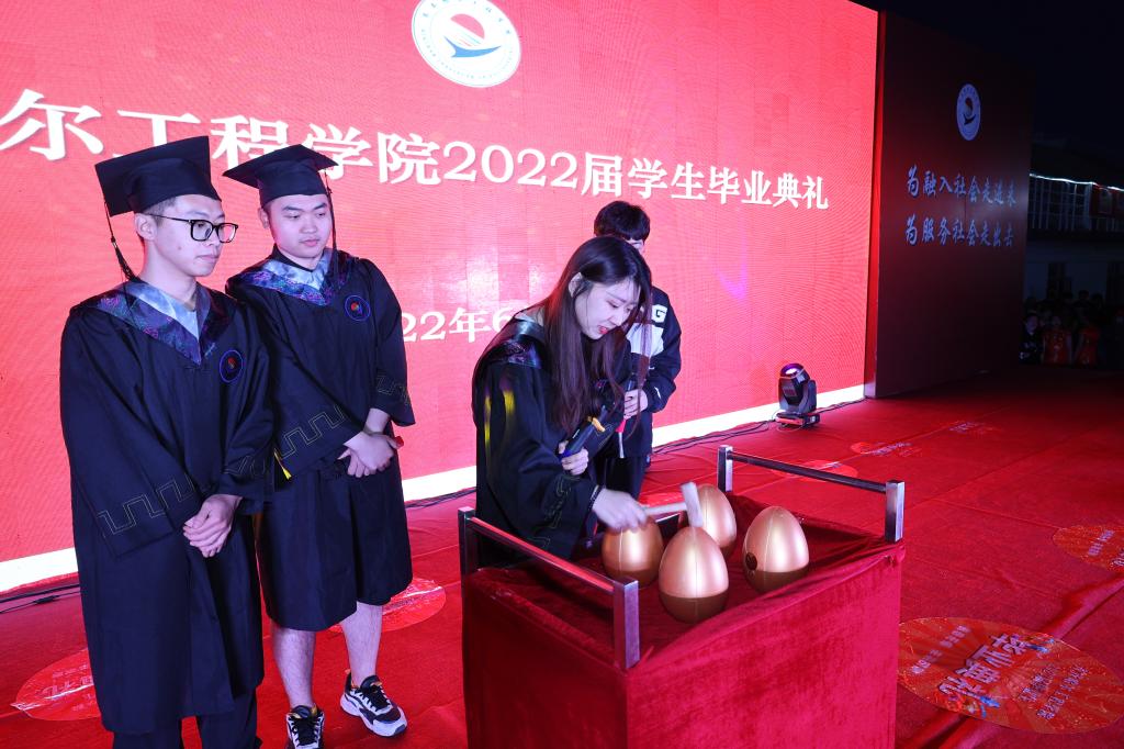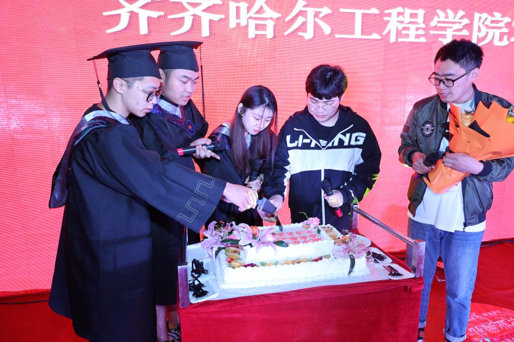 在这个特殊的日子里,学校为当天过生日的辅导员姜宏伟老师及四位毕业生送上了生日蛋糕并连线家人,全场共唱生日歌,砸金蛋赠送礼物,暖心的惊喜,感动了在场的每个人。翻看椅子,击鼓传球等抽奖活动,使得现场成了欢乐的海洋。