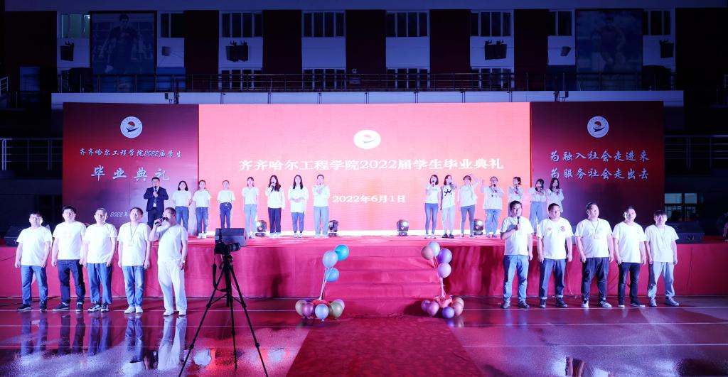 歌舞欢庆,异彩纷呈。师生代表合唱《一起向未来》,表达了对未来的美好憧憬;舞艺工坊社团带来舞蹈《无奋斗不青春》激情昂扬;师生深情朗诵《我们走过四年大学时光》催人泪下;基础部教师们演唱的《放心去飞》饱含期盼与祝福;全体毕业生们合唱《再见》表达即将告别校园,告别朝夕相处的老师和同学的不舍;全体辅导员们合唱《明天会更好》,殷切期盼毕业生们要敢于拼搏、无所畏惧、不断前行。