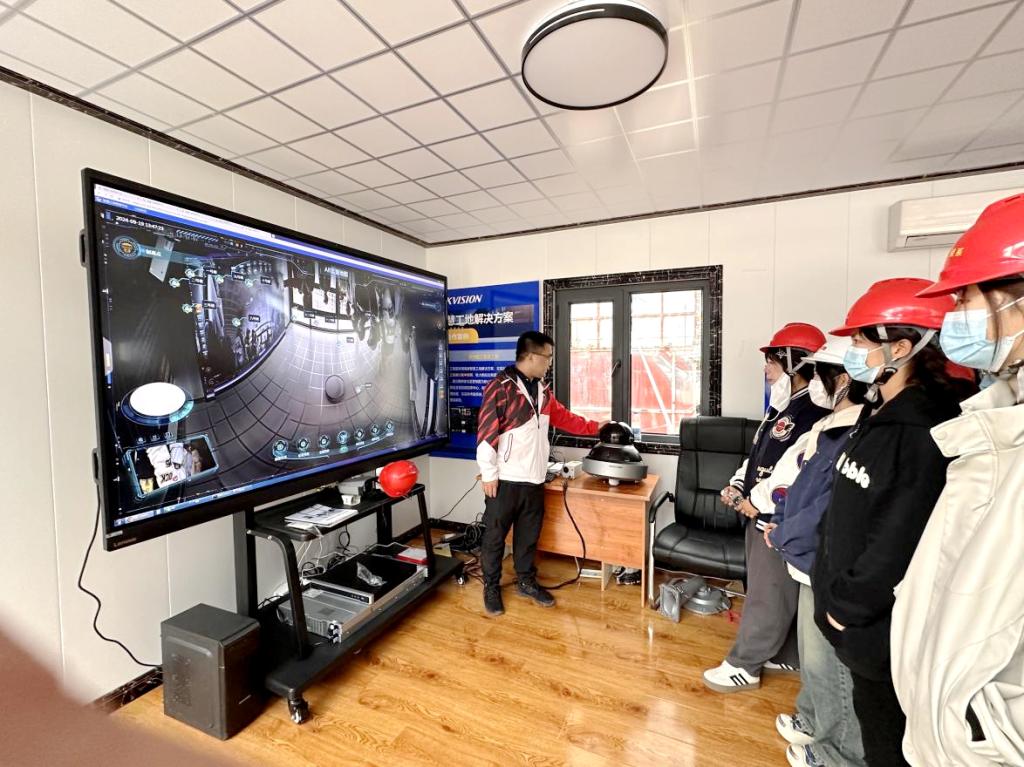 在华玉府幸福里项目门口,学校师生受到施工方技术工程师倪志强及相关工作人员的热烈欢迎。在施工现场智慧工地平台展示区,倪志强为师生详细讲解了智慧工地的行业背景、解决方案,展示了智慧工地系统平台的操作,分享智慧工地系统平台在实际项目中的应用案例,让学生了解其实际效果。