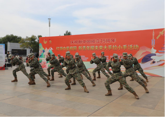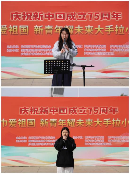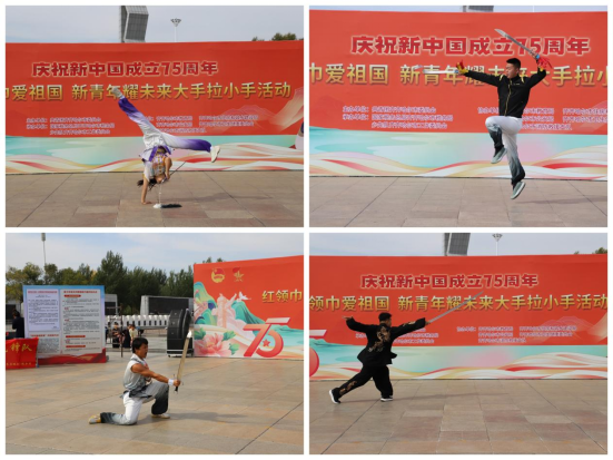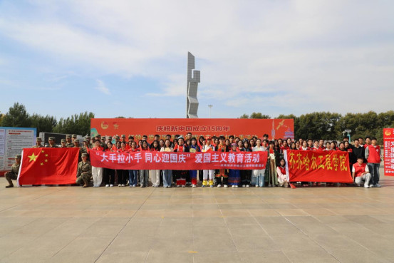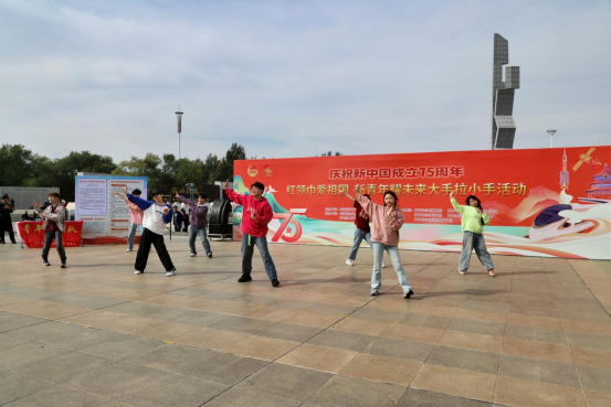 为庆祝中华人民共和国成立75周年,弘扬爱国主义精神,激发广大青年的爱党爱国热情,9月28日上午,团市委组织全市共青团各战线青少年共同开展“红领巾爱祖国新青年耀未来”大手拉小手活动,学校团委、大学生艺术团、学长教官团、大学生青年志愿者协会共100余人参加。