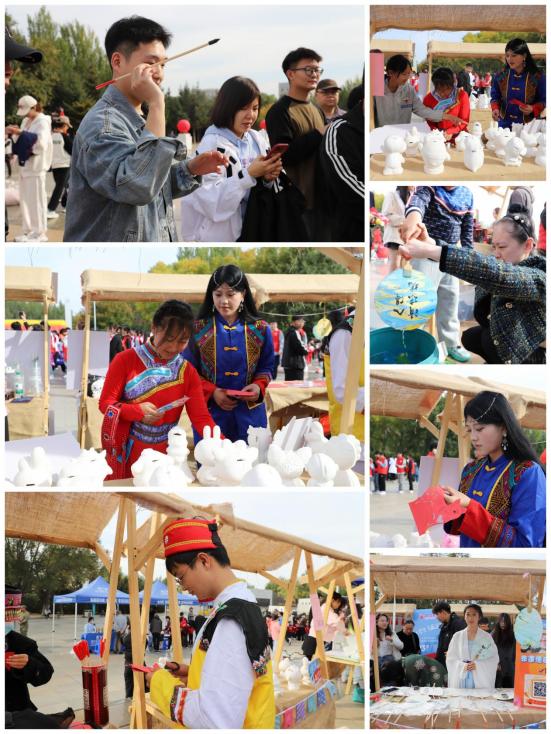 学校设置了“非遗剪纸”“非遗漆扇”“石膏彩绘”及“投壶”四个文化展位,吸引了众多市民和小朋友的目光。云扬羽裳汉文化社团学生身着汉服展示了漆扇制作的精湛技艺。在手工剪纸和投壶体验中,部分少数民族学生也参与其中,大家深刻感受到各民族传统文化的魅力。