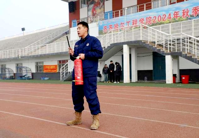 保卫处倪柏亮为学生开展了消防安全教育宣讲。他讲解了火灾的危害、现场演示了消防器材使用方法,希望全体学生不断提高对火灾预防的重视,增强应急救援意识。