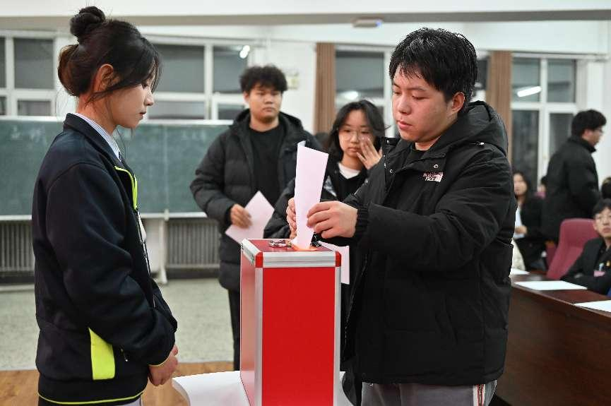 在竞选环节,学生会七位主席团候选人、十七位学生会委员依次竞选。在监票人的监督下,学生代表进行了无记名投票。