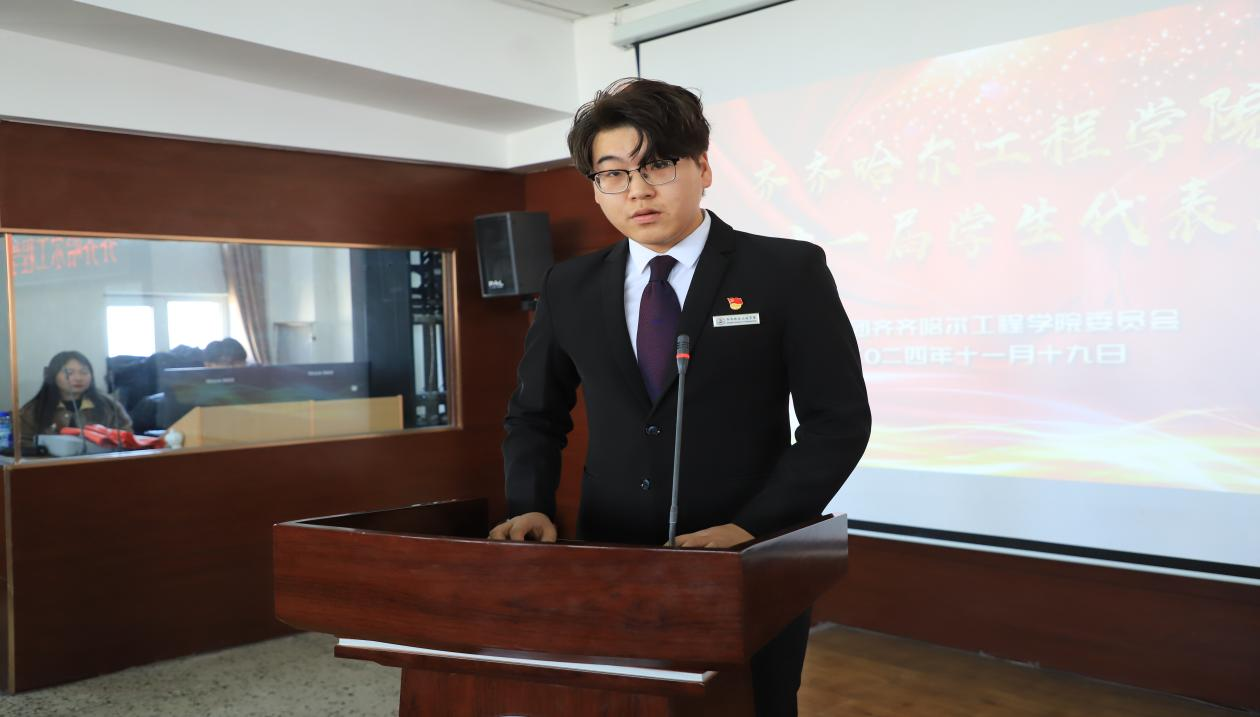 陈景鑫代表学校向本次学代会的胜利召开表示祝贺,对各级学生会和广大学生干部的工作给予高度认可和充分肯定,并向全校学生提出了三点希望:一是围绕“榜样力量”内在要求,引领动员团员青年担当大任,打牢道德根基,践行“三五能力”;二是紧扣“桥梁纽带”作用发挥,坚定服务团员青年成长成才;三是着眼“先锋组织”建设目标,推动共青团全方位、高标准建设,充分发挥团学干部共青团事业的“根本依托和骨干力量”作用。