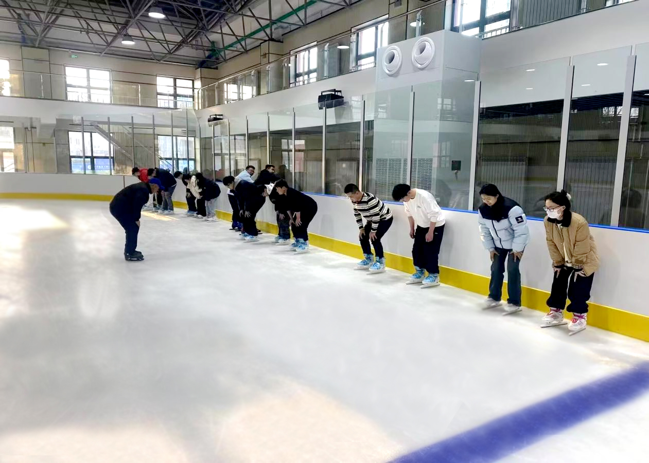 在游泳馆内,清澈的池水波光粼粼,映照出同学们跃跃欲试的兴奋脸庞,教师细致讲解动作要领后,同学们从岸上的热身练习,到入水后的初次划水尝试,每一步都充满探索热情,泳池中泛起的水花也格外活力四溅。冰上运动馆里,冰面在灯光下晶莹剔透,如同学们殷切的求学之心一样纯净,同学们脚蹬冰鞋,在教师搀扶下小心翼翼迈出滑行第一步,尽管有人步伐踉跄,有人不慎跌倒,但没有人气馁,同学们的眼神中满是对掌握冰上速度的火热渴望。