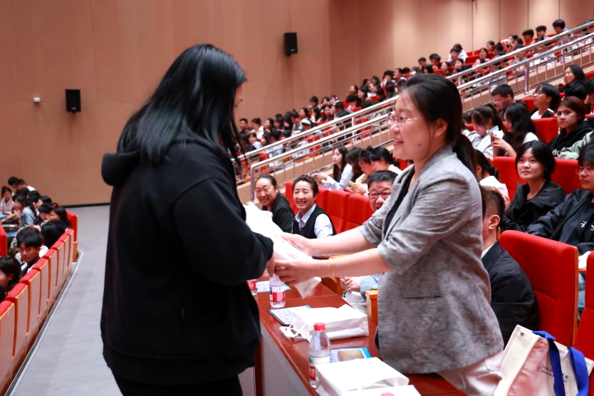 随着互动环节的推进,近千个手机屏幕在会场各处同时亮起,同学们奋力摇动手机,闪烁的亮光在不同座位此起彼伏。每一次抽奖结果的揭晓,都伴随着热烈的欢呼、掌声与笑声,将现场气氛一次次推向高潮。