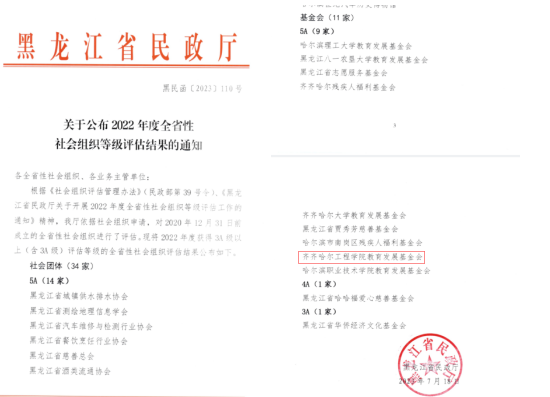 近日,黑龙江省民政厅发布了《黑龙江省民政厅关于开展2022年度全省性社会组织等级评估工作的通知》,伟德官网教育发展基金会获得社会组织(基金会)评估最高等级“5A”。