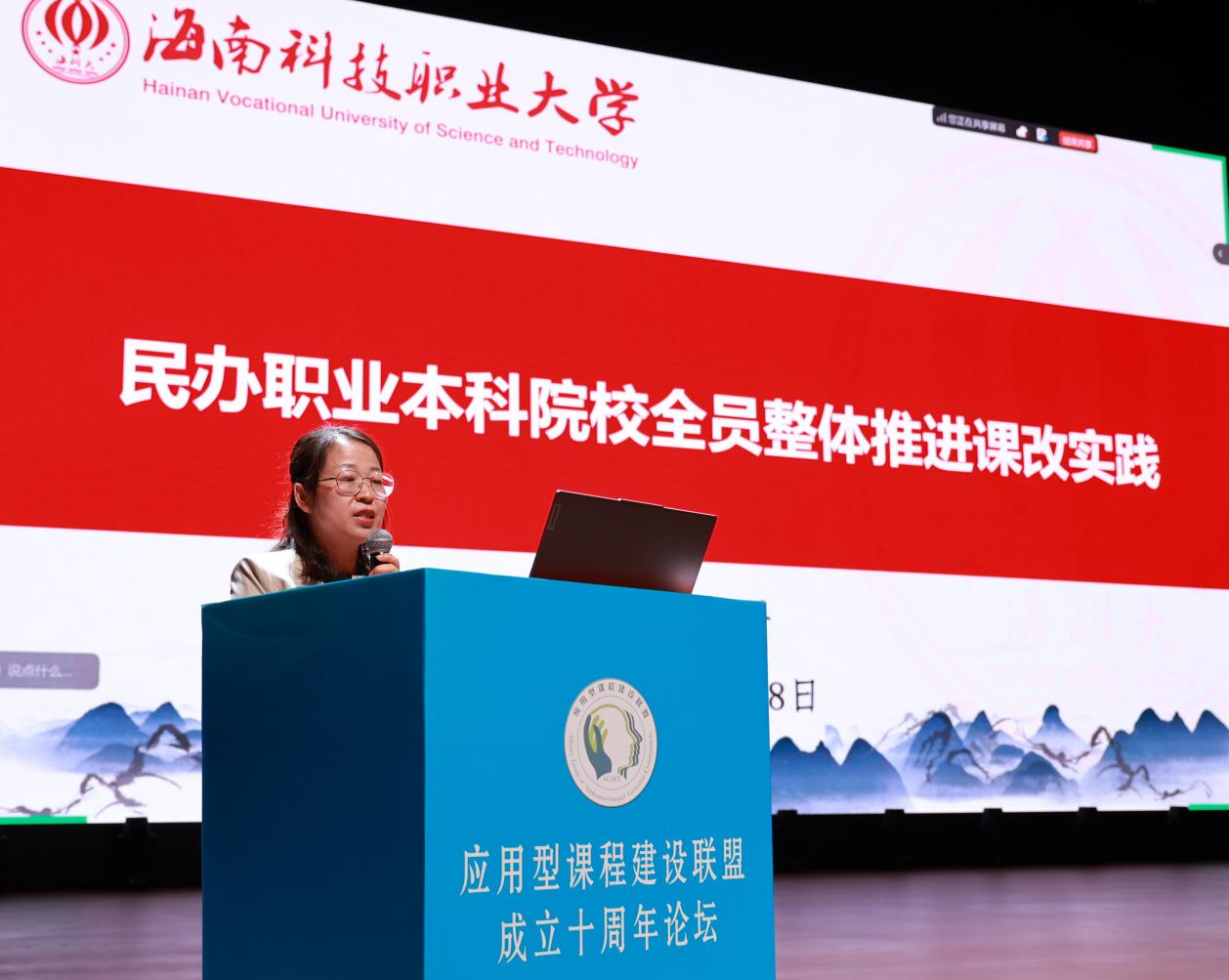 海南科技职业大学教务处副处长阙小平作《民办职业本科院校全员整体推进课改实践》报告。她指出,海南科技职业大学作为首批职业本科试点校,围绕海南自贸港产业,构建产教融合生态,打造“四真三化”课改体系,搭建多元平台,深化校企协同,持续提升人才培养质量。未来,学校将科学规划,借自贸港建设契机,以高质量发展为主题,争创特色鲜明的高水平职业本科大学。