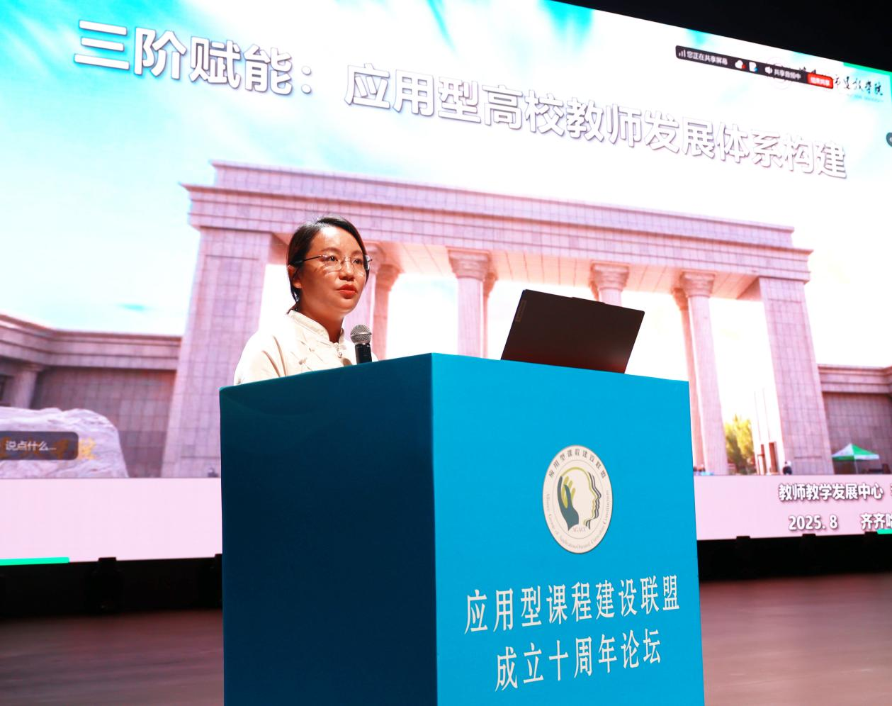 沈阳城市建设学院教师教学发展中心副主任李琪作《三阶赋能:应用型高校教师发展体系构建》报告。她表示,沈阳城市建设学院以“三阶赋能”构建教师发展体系:携手名校“引优培优”,“自主培育”校本名师,完善制度经费保障“系统发展”。用“课堂革命”倒逼教学改革,改变“满堂灌”的课堂。以AI赋能、课程思政和产教融合为抓手,助力应用型人才培养。
