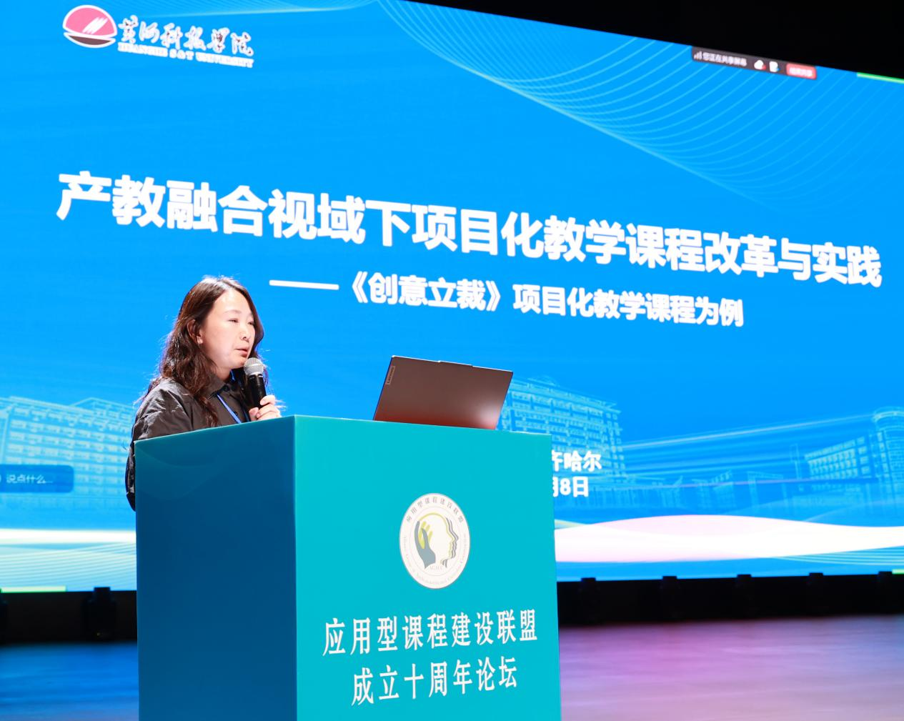 陕西国际商贸学院教务处副处长郭静作《践行“三五”理念 深化产教融合——课程建设改革探索》报告。指出,陕西国际商贸学院坚持走应用型人才培养之路,不断深化产教融合、强化应用型课程建设。创造性提出“三结合五赋能”人才培养理念,构建了具有自身特色的“54321”课程体系。强调应精准锚定当下产业升级对应用型人才的需求风向,按照四真三化原则重构课程内容体系,培养契合产业升级需求的应用型人才。