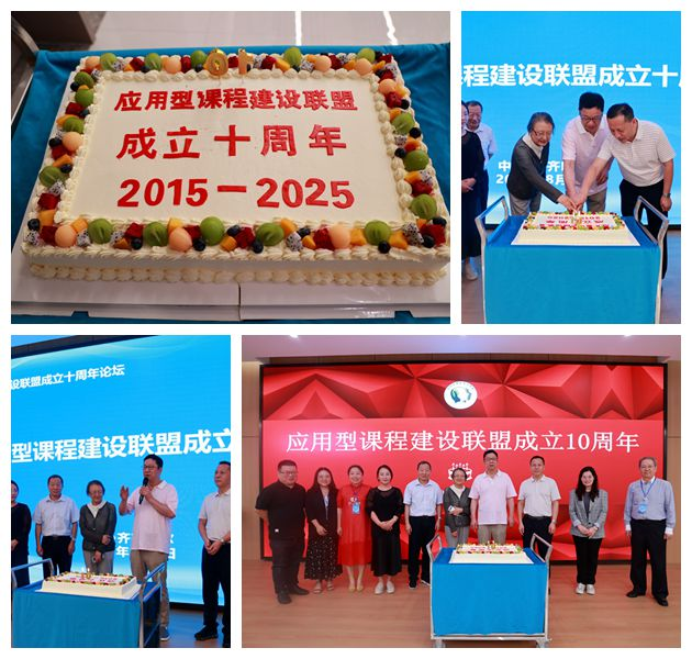 在论坛期间,应用型课程建设联盟同步召开了理事会会议。会后,全体理事举行了精简但温馨的十周年庆祝仪式,同切寓意丰硕成果的纪念蛋糕,并合影留念。