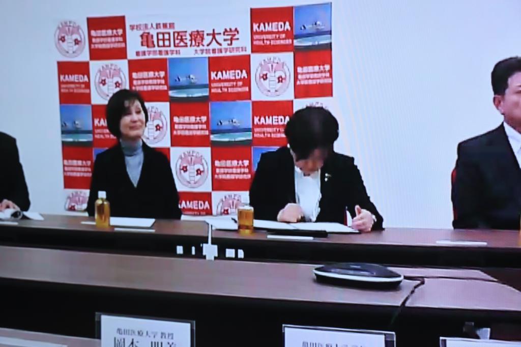 为深化对外交流,推动国际教育合作进程3月21日下午,学校与日本龟田医疗大学举行线上合作拓展会谈暨教育与研究交流协定签署仪式。龟田医疗大学校长田中美惠子、教授中岛洋一、教授冈本明美,翻译曹东光校院长曹然彬、副院长白雪、康护工程系主任郭玲玲及国际交流合作处相关负责人共同出席活动