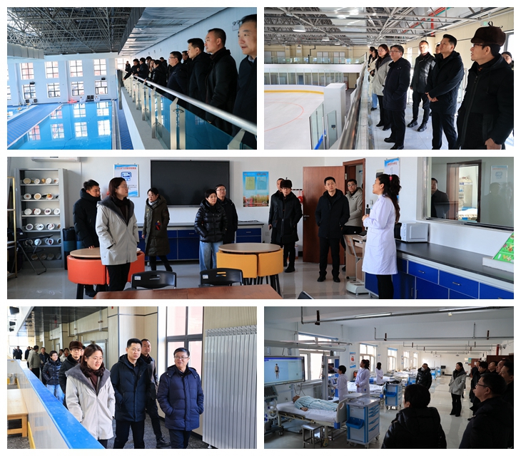 代表团在副院长、龙沙区人大代表白雪,副院长、龙沙区人大代表张静的陪同下,先后深入到应用型人才培养基地、大健康教育实训教学中心等地参观,详细了解学校发展历程、办学特色、师资配备、学科建设、学生就业和未来规划等情况,并为学校发展提出了建议。
