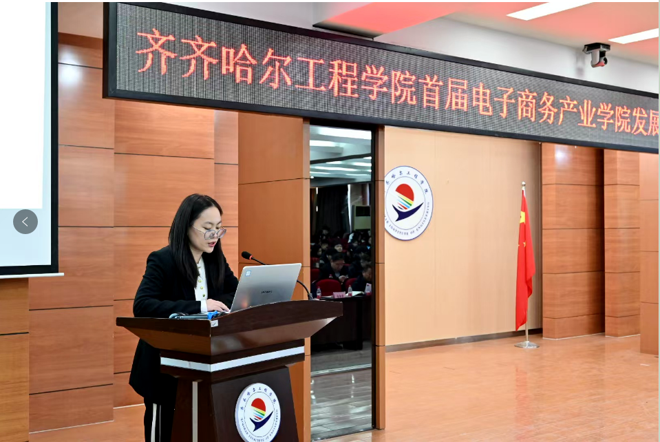 12月27日,由学校与齐齐哈尔高新区创新创业服务中心主办,信息工程系与齐工产教集团联合承办的首届电子商务产业学院发展大会暨创新人才培养高峰论坛在学校图书馆 601报告厅举行。本次活动邀请了政府领导与电子商务行业企业专业人士,由信息工程系教学副主任刘春媛主持。