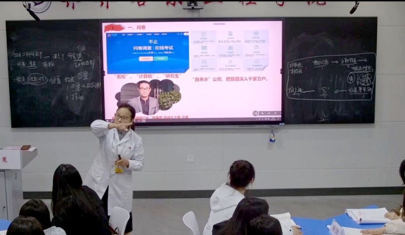 康护工程系苏森森老师在《护理研究》课程中,结合专业实践和问卷调研引导学生理解医护人员的职业道德和社会责任,同时通过讲解问卷星创始人的故事,向学生传递了未雨绸缪、运筹帷幄的理念。