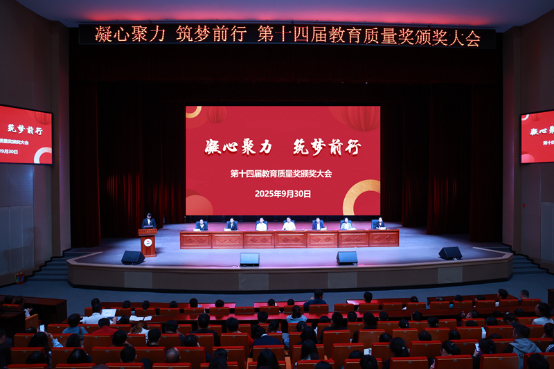 为大力弘扬教育家精神,进一步营造重视教育教学、崇尚先进的良好氛围,9月30日下午,学校在产教融合基地人民会堂举行第十四届教育质量奖颁奖大会,创校校长、理事长曹勇安,校长、党委副书记曹然彬,校党委书记郭伟东,党委副书记、纪委书记、副校长陈景鑫,副校长白雪、副校长张静、总会计师姜岩出席会议。会议由全面质量管理办公室主任孟艳辉主持,全体教职工参加。孟艳辉从三个方面对第十四届教育质量奖总体情况作了介绍,本...
