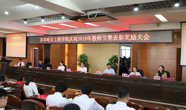 9月10日下午,学院庆祝2019年教师节暨表彰奖励大会在图书馆601报告厅召开。 大会开始,全体起立,奏唱国歌。2019年加入齐工程学院大家庭的66位新教师,由基础部于丽媛老师带领,面向国旗进行入职宣誓,在全体教...