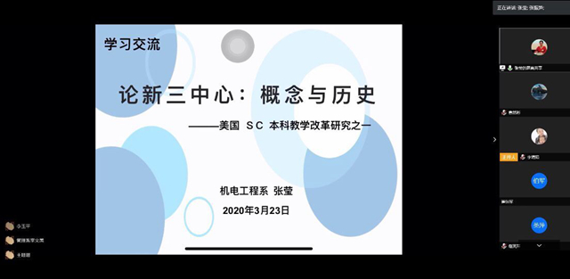 3月23日晚,教师发展中心组织“以学生为中心”思享汇活动,邀请机电工程系主任张莹领学《论新三中心:概念与历史》一文。理事长曹勇安、院长曹然彬与260位教师一起参加学习活动。 在领学中,张莹主任结合对“新三中心...