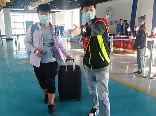 9月7日早,学校科技园门前阳光明媚,志愿者队伍正在这里迎接第二批返校的学生。这批返校的同学们要在三楼空旷的大学生活动中心进行扫码、测温、登记与核酸检测,并等待检测结果。 7点30分左右,笔者看到一名男同学手...