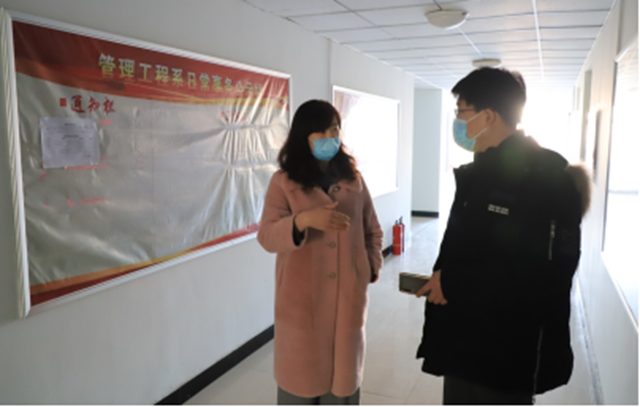 3月1日下午,学校进行春季学期开学疫情防控工作自查。副院长张振笋、白雪率领院长助理兼总务处处长易炳耀,学生工作处负责人高爱利、校办副主任王鑫、保卫处副处长张景文组成检查组。各部门按照学校春季学期开学疫情...