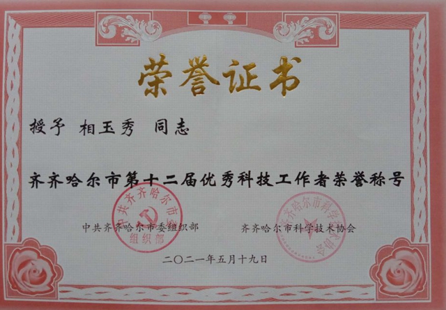 在中国共产党建党100周年和第五个全国科技工作者日到来之际,市委组织部、市科协组织开展了齐齐哈尔市第十二届优秀科技工作者评选工作,决定对在基础研究、工程技术应用、创新驱动发展服务、科技成果推广转化、科技管...