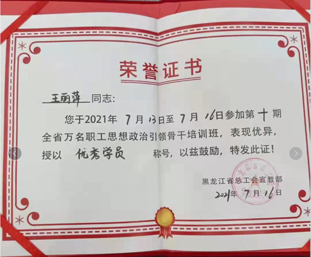 7月13日至16日,由黑龙江省总工会举办的“全省万名职工思想政治引领骨干培训女职工骨干专期”培训班在哈尔滨举行,共有来自全省的女工会干部、女劳模、女职工先进代表200多位巾帼学员参加培训。伟德官网工会副主席王丽萍...