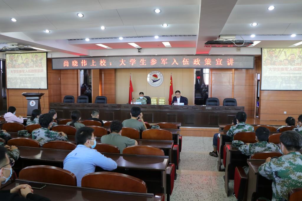 为落实学校所倡导“亮剑”精神培育,普及大学生参军入伍政策,激发广大学生参军入伍热情,促进应征入伍工作。9月16日下午,由学校学生发展中心、学生处、武装部共同举办的大学生参军入伍政策宣讲大会在图书馆601报告...