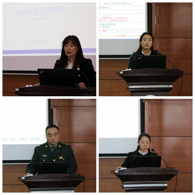 1月21日9点,学校在图书馆601报告厅组织召开2021年度中层干部述职大会,45名中层干部进行述职,校领导、各部门正、副职及内设科室负责人参会。人事处副处长张平主持本次会议。 本次述职的目的是科学精准考评中层干...
