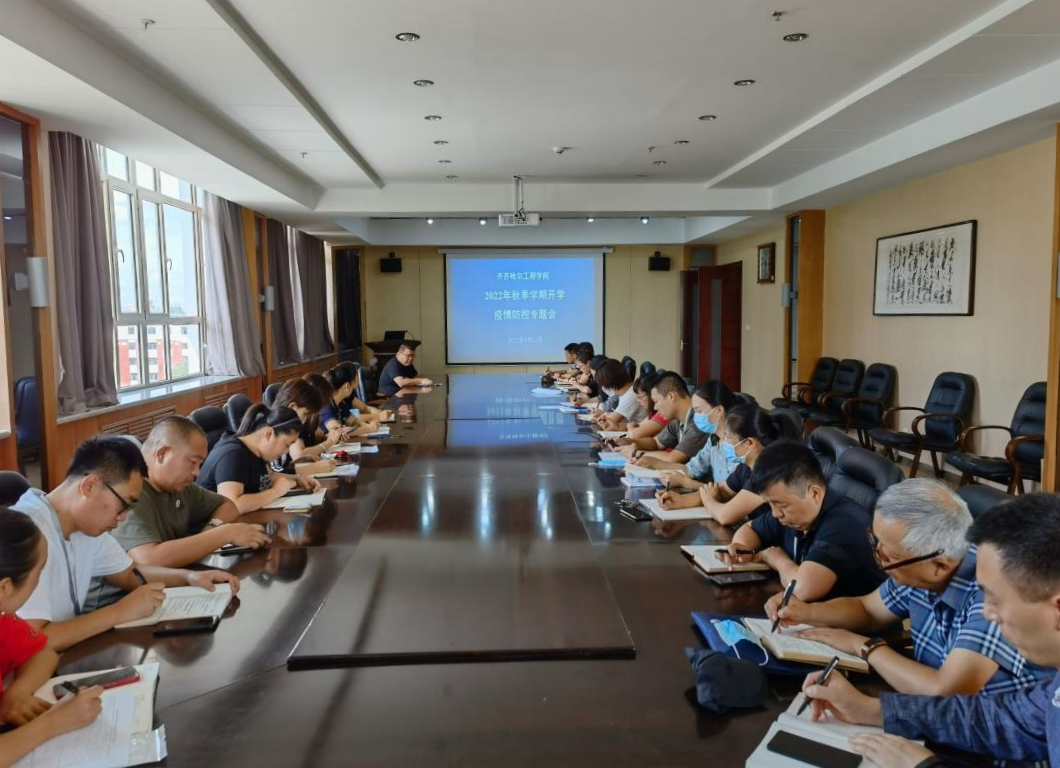 8月15日,学校在图书馆603南会议室召开2022年秋季学期开学疫情防控专题会,党委书记郭伟东,副院长张振笋、白雪,各部门负责人参加会议,副院长白雪主持。 副院长白雪首先传达了省、市关于2022年秋季开学疫情防控工...