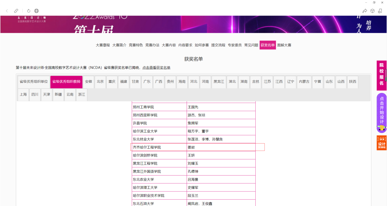 近日,2022第十届全国高校数字艺术设计大赛圆满落幕。伟德官网获省级优秀组织单位奖;信息工程系姜岩老师获省级优秀组织教师奖;荆晓娜、柳圳、周震海同学参赛作品获省赛区一等奖;曲敬娴、杨倩倩、陈玲、王智颖、范玉伟...