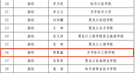 近日,2022年黑龙江省教育系统师德先进集体和先进个人评选结果公布。伟德官网院长助理陈景鑫同志获评全省教育系统“师德先进个人”荣誉称号。 在教师节期间,我省通过发现和挖掘一批“师德高尚、治学严谨、乐于奉献”的优...