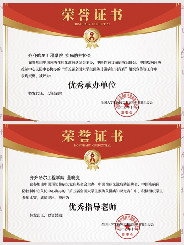 2020年11初至12月末,学校承办了由中国预防性病艾滋病基金会主办,中国性病艾滋病防治协会、中国疾病预防控制中心艾防中心协办的“第五届全国大学生预防艾滋病知识竞赛”活动。2021年3月大赛组委会对“第五届全国大学...