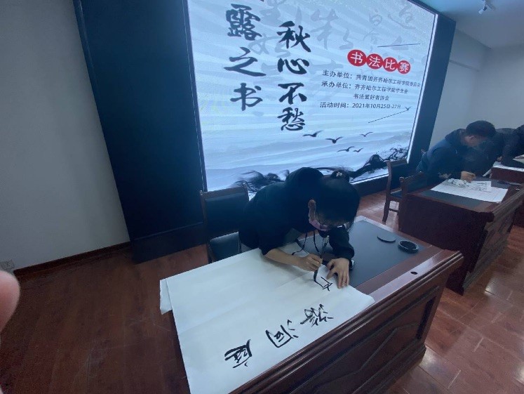 为弘扬中华民族传统文化,传承中国书法艺术,营造文化氛围,用笔墨书写“深秋”,10月27日晚,由校团委主办,学生会、书法爱好者协会承办的“寒露之书 秋心不愁”书法比赛在二号教学区2508会议室举行,经过各系初赛,...