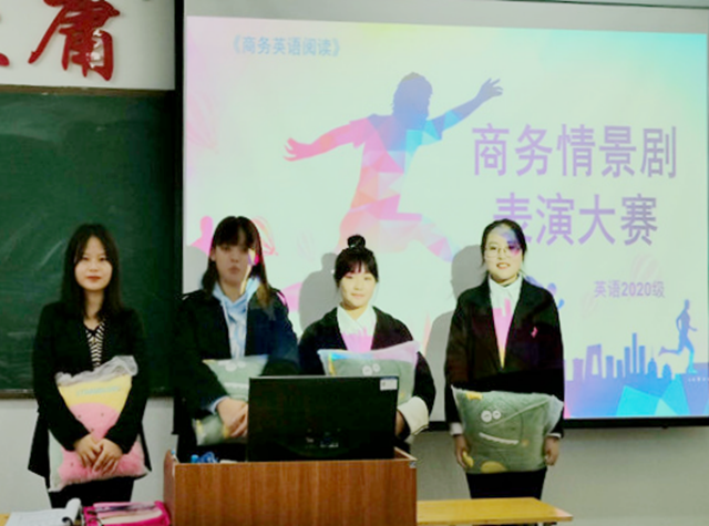 为进一步提高学生商务交际能力,促进英语专业学风建设,管理工程系英语专业2020级学生于12月15日在二号教学区2301教室开展了“商务情景剧表演大赛”活动。英语专业教师齐锐、康琦、郭慧莹担任此次大赛的评委。 评委...