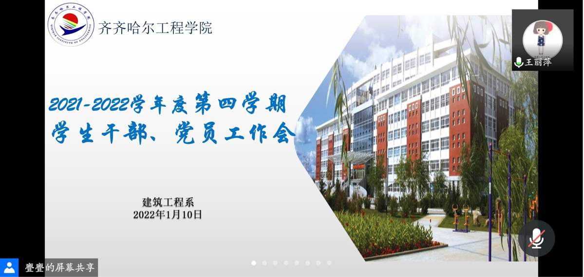 1月10日中午,建筑工程系举行“第四学期学生干部、党员工作”腾讯会议,系各组负责人以及学生干部、党员在线参会,此次会议由建筑工程系党总支书记、学生工作副主任王丽萍主持。 王丽萍老师首先强调了第四学期的重要...