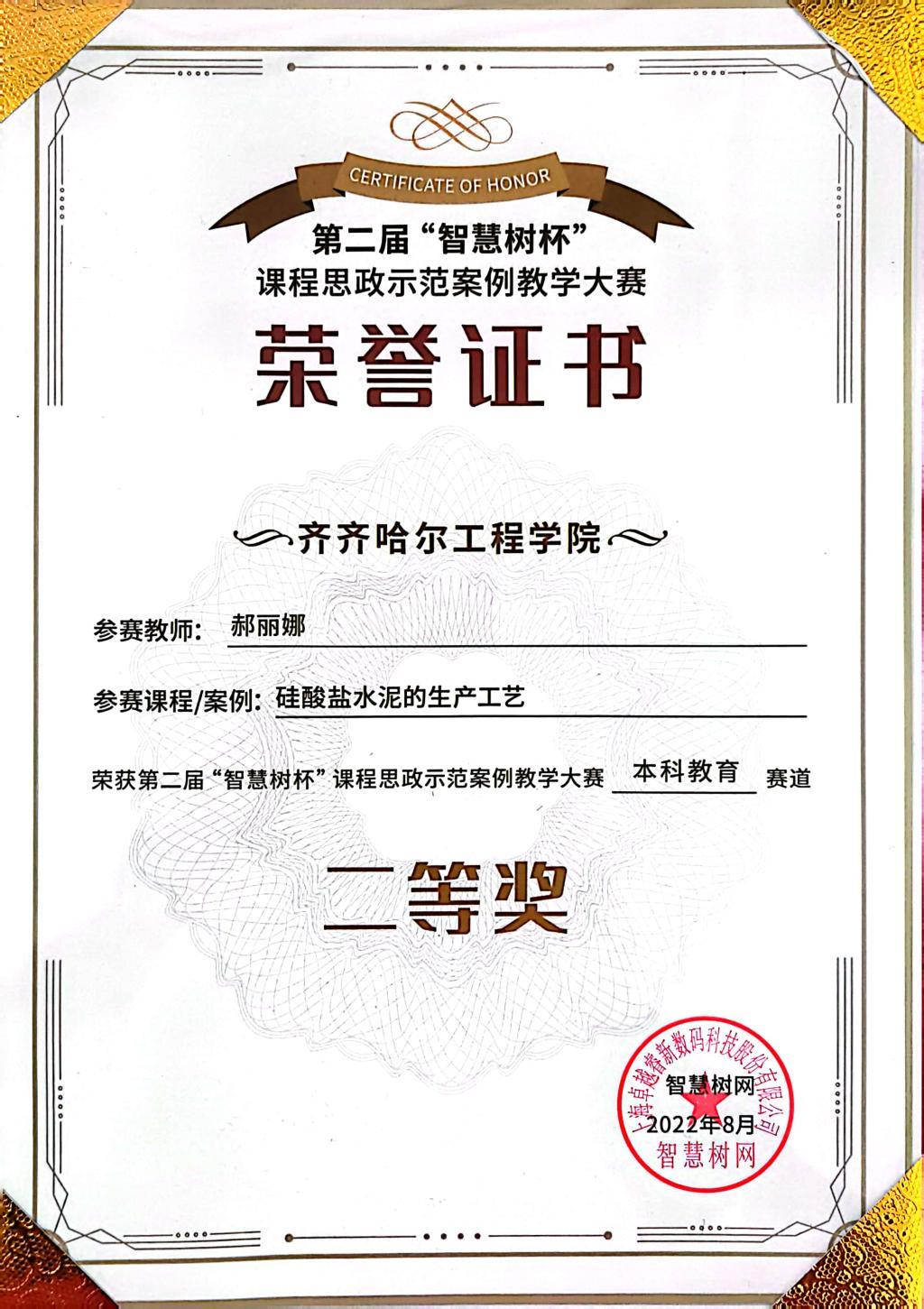 日前,由智慧树网主办的第二届“智慧树杯”课程思政示范案例教学大赛圆满落幕。伟德官网建筑工程系郝丽娜老师参赛案例《硅酸盐水泥的生产工艺》荣获“本科教育赛道”二等奖。本次大赛旨在挖掘、展示课程思政教学设计及建...