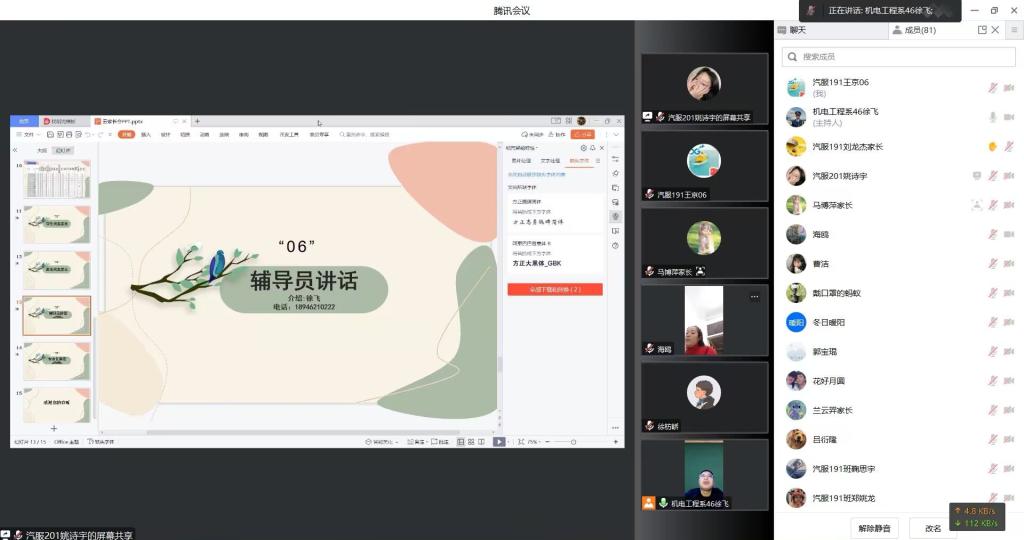 2月16日下午,机电工程系车辆专业在线召开云家长会。宋华、苏海龙、李春波、贾文静、赵凤伟、张岩老师,以及专业2020、2021级学生和家长200余人参会。 会上,学生代表向家长讲述学校公寓管理制度及学生日常行为管理制...