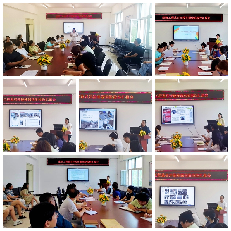 7月4日下午,建筑工程系在二号教学区2409会议室召开2022-2023学年度专业实践学期校外课堂阶段性汇报会。系负责人、党总支书记徐明以及全体教职工参会, 教学工作副主任郝丽娜主持。 系负责人徐明强调,各专业要发挥优...