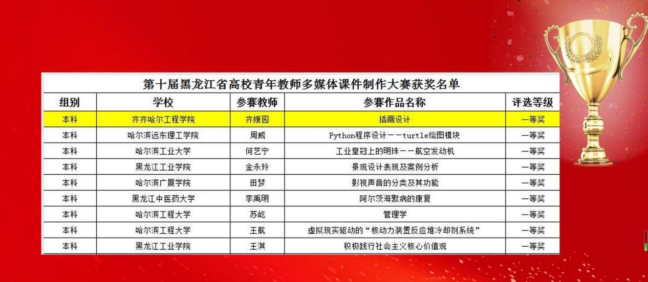 近日,黑龙江省高师培训中心公布“第十届黑龙江省高校青年教师多媒体课件制作大赛获奖名单”,伟德官网信息工程系齐媛园老师荣获本科组一等奖。本次大赛全省共评选获奖作品73件。其中本科院校组一等奖15件、二等奖25件,高职高专组一等奖11件、二等奖22件,伟德官网教师在大赛上获得佳绩。学校高度重视课程建设,深化教学方法和教学模式改革,积极推进现代教育技术与课堂教学的有机融合。教师发展中心以信息化教学比赛为载体,认真组织...
